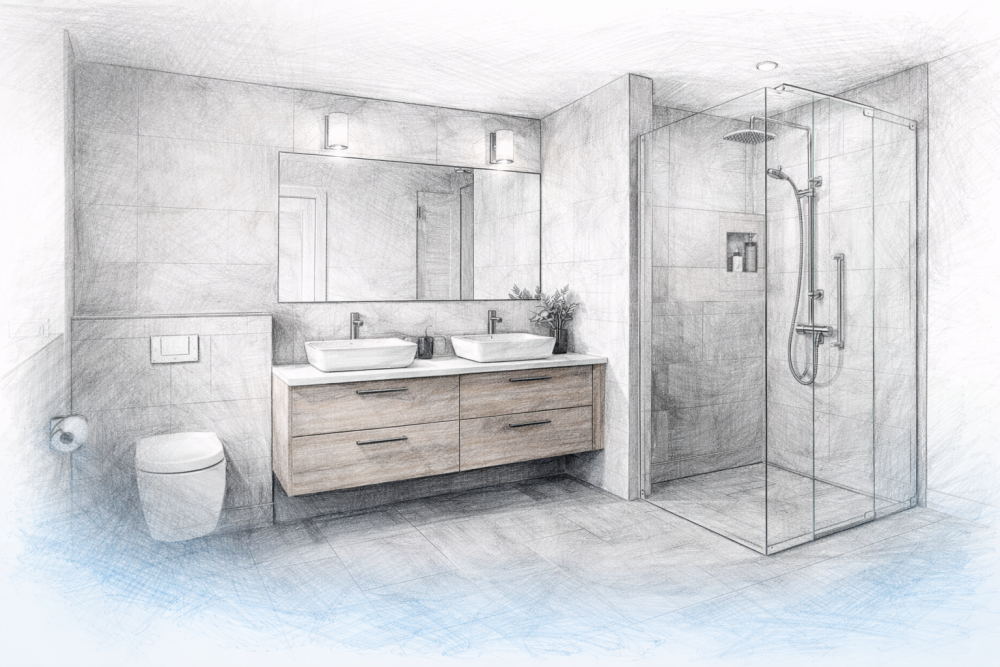 Váš náčrtek prostoru koupelny kompletně přepracujeme do softwaru pro návrhy a vizualizace interiérů. Následně navrhneme dispozici, vybavení i obklady/dlažby.