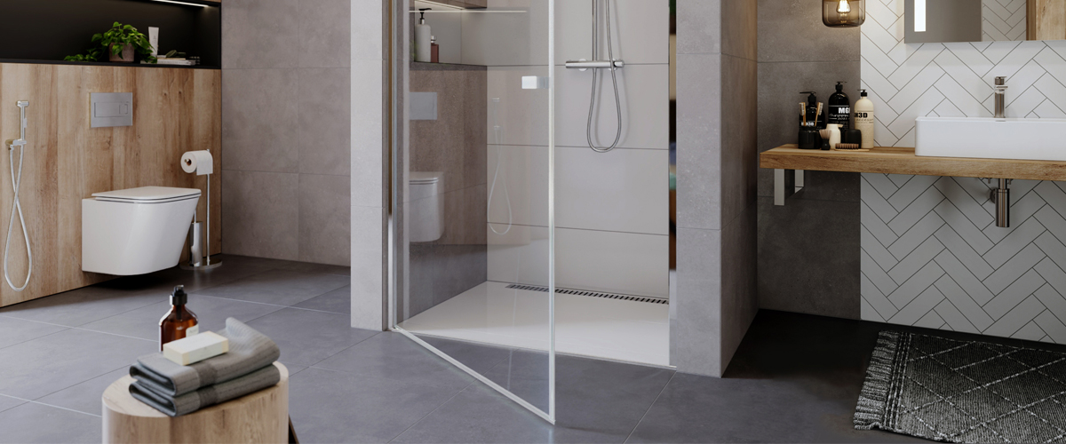 - Walk-in sprchové zástěny – ideální do větších koupelen, kde vynikne otevřený prostor, jednoduchost, minimalismus a snadný přístup.