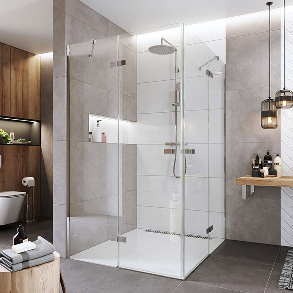 - Zalamovací dveře – nejlepší pro menší koupelny, kde šetří každý centimetr. Dveře se skládají dovnitř i ven, čímž šetří místo a zároveň umožňují pohodlný vstup.