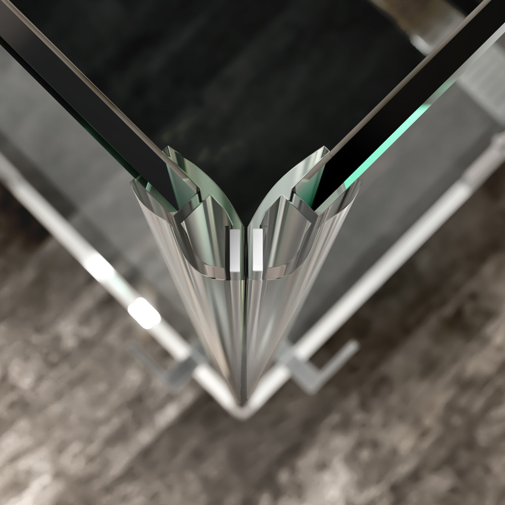 - Bezrámové provedení: Čistý design skleněných stěn