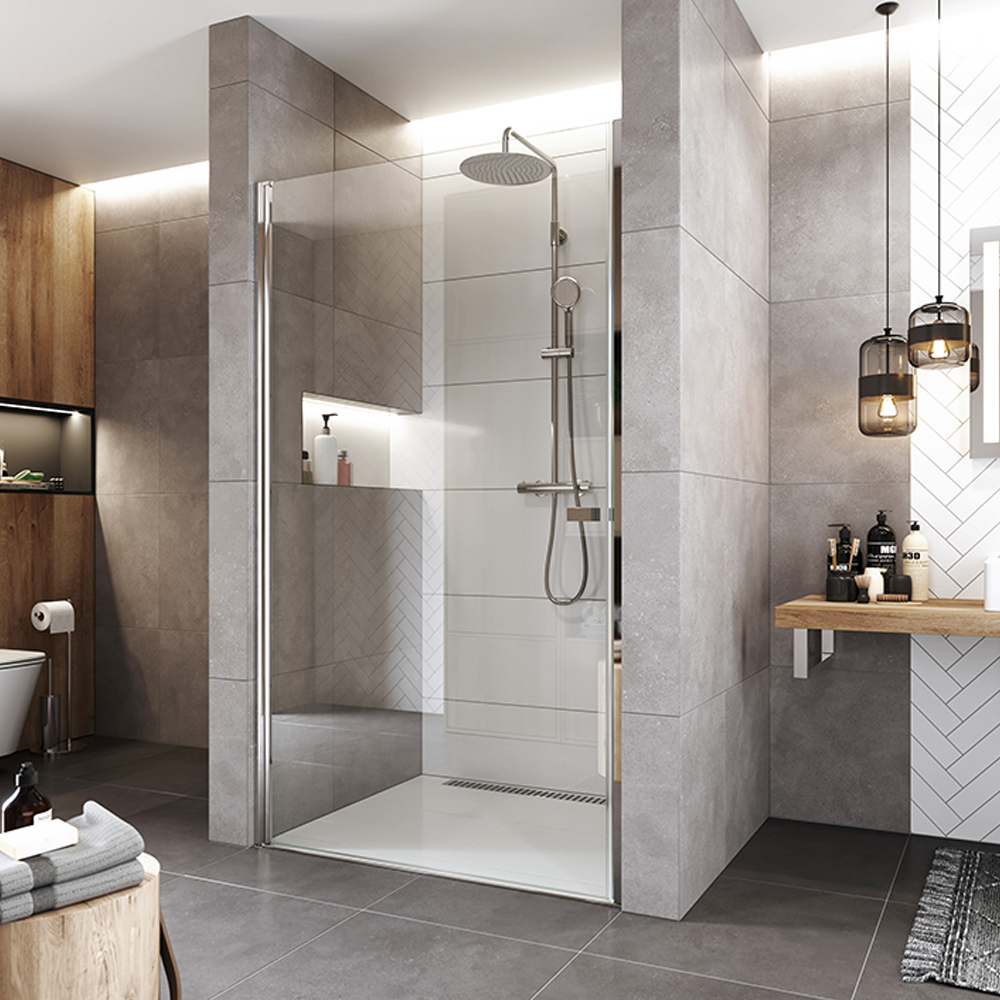 - Pivotové dveře – stylové řešení do prostornějších koupelen, které zaujme elegantní osou otáčení a umožní široký vstup bez rámů.