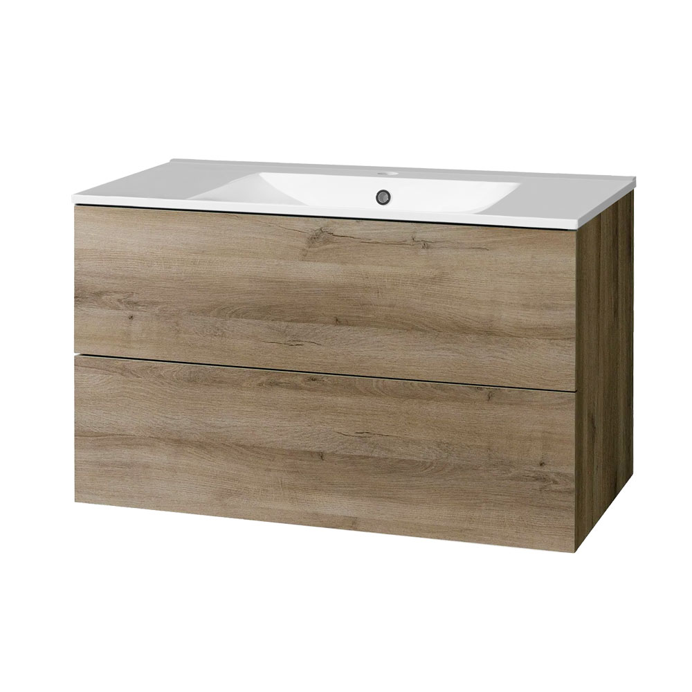 Mereo Aira, koupelnová skříňka s keramickým umyvadlem 101 cm, dub Halifax