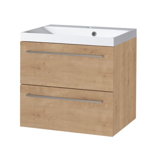 Mereo Bino, koupelnová skříňka s umyvadlem z litého mramoru 61 cm, dub Arlington