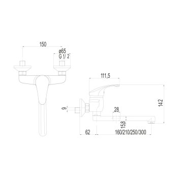 Mereo Dřezová nástěnná baterie, Sonáta, 150 mm, s ramínkem plochým rovným 300 mm, chrom