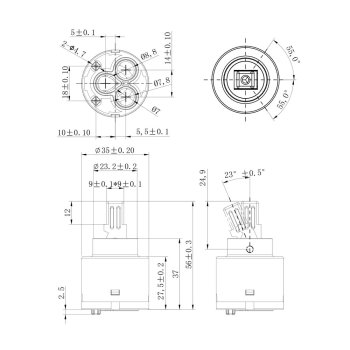 Náhradní keramická kartuš k bateriím o průměru 35 mm, nízká, v provedení s dvěma jistícími kolíky, je určená pro baterie CBE20103,CBE30201,CBE60103,CBE90203,CBE90103,CBE60101Sx,CBE60104Sx,CBE20103D, CBE60103D, CBE90103D, baterie Zuna(mimo CB10103Z,CB10104Z), baterie Lila a baterie s MBOXY CBE60101B, CBE60101AB, CBE60107, baterie CBV20101, CBV10101,CBV60103, CBE20104, CBE20104D