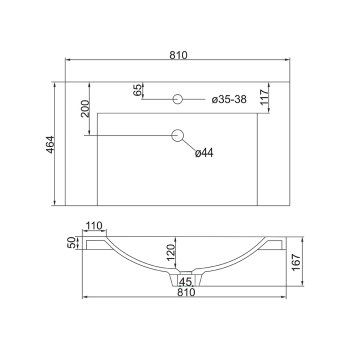 Umyvadlo je dodáváno bez sifonu a výpusti – doporučujeme kompatibilní výpusť podle typu přepadu.