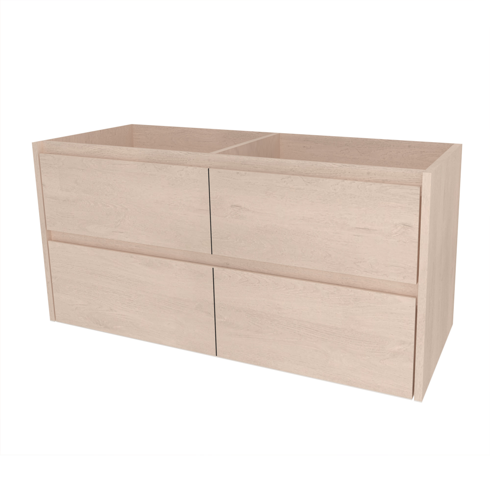 Všechny skříňky jsou dodávány smontované a určené k zavěšení, což zajišťuje rychlou montáž, elegantní vzhled a snadný úklid podlahy. Zásuvky a dvířka jsou vybaveny pojezdy Strong s tlumeným dovíráním, které garantují tichý, plynulý chod a dlouhou životnost.