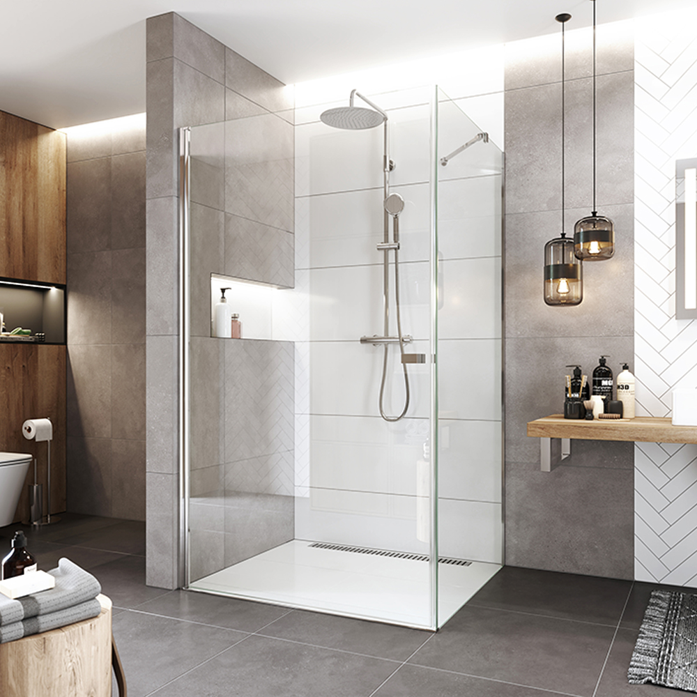 Otevírání celého křídla v kuse umožňuje poskytnout maximální šířku vstupu do sprchového prostoru. Zdvihací panty zajišťují podzvednutí skla a otevírání bez tření o podlahu.