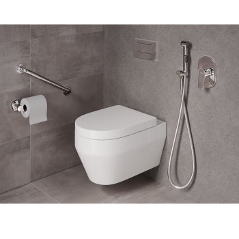 Praktické řešení pro toalety, kde není místo pro umyvadlo či bidetovou mísu. K provozování intimní hygieny postačí tato podomítková baterie s bidetovou sprškou a hadicí dlouhou 1,5 m.Přívod vody je třeba u baterie uzavřít vždy po ukončení používání bidetové spršky, aby sprchová hadice nezůstávala pod tlakem.
