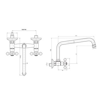 Mereo Retro Viktoria baterie dřezová, nástěnná, 100 mm, s U ramínkem trubkovým ø 18 mm - 230 mm