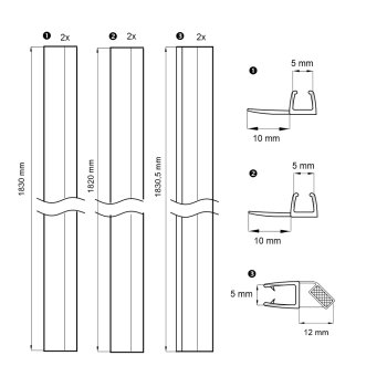 Sada těsnění (posuvné dveře 2 ks, fixní sklo 2 ks, magnetické lišty - 45° 2 ks) pro kouty KORA CK35101Z, CK35111Z, CK34101Z, CK34121Z, CK34111Z a KORA Lite CK34123Z, CK34133Z.
