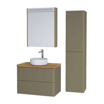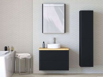 Samozřejmostí jsou 155 cm vysoké skříňky ve stejném designu a zrcadlové skříňky s LED osvětlením, s jedním nebo dvěma dvířky.