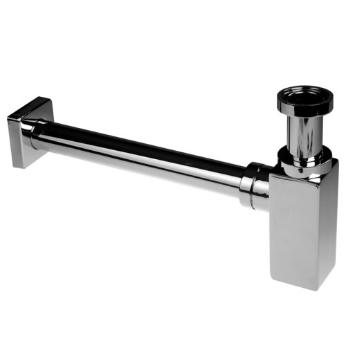 Celokovový chromovaný sifon s převlečenou maticí v hranatém designu.