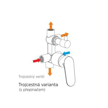 V sérii baterií DITA se snoubí hranaté linie s oblými, čímž je předurčena pro univerzální použití do celé řady moderních interiérů.Trojcestná varianta (s přepínačem 3 polohy) je určena do sprchových koutů s ruční sprchou, hlavovou sprchou a dalším zdrojem tekoucí vody, např. vodopádem.