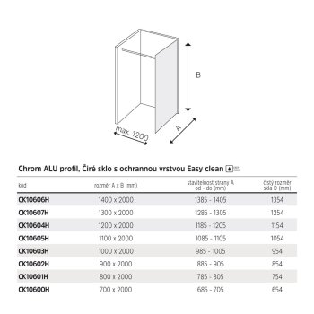 | boční díl pro rozšíření skleněné plochy nebo částečné uzavření sprchového prostoru | polička pro stěny Walk In | T kus pro variantu se dvěma stěnami |