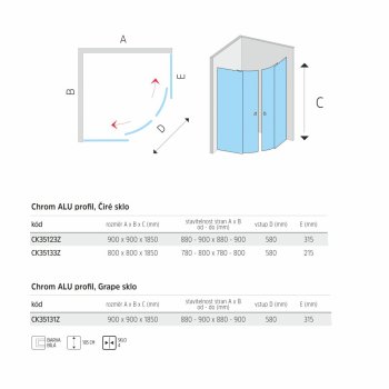 Sprchové kouty ze série Kora, která vnáší do ekonomické třídy nový rozměr kvality. Tloušťka bezpečnostního skla je 4 mm, v designu skla Čiré. Sprchový kout je osazen posuvnými dveřmi, které mají ložiskové pojezdy s excentrickým usazením (možnost perfektního seřízení). Dorazy zajišťují minimální nárazy při otevírání a zavírání sprchového koutu.Spodní pojezdy umožňují odklopení posuvné části sprchového koutu a vyčištění běžně nedostupných míst. Těsnost mezi pevnou a posuvnou částí je zajištěna stíracími silikonovými lištami na obou dvou částech, nejedná se však o hermeticky uzavřený výrobek.