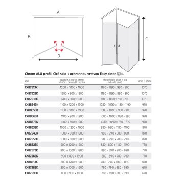 Výrobky v čirém provedení jsou opatřeny ochrannou vrstvou skla již při výrobě EASY CLEAN. Tato ochranná vrstva vytváří na povrchu skla neviditelný štít. Odstřikující voda je odpuzována a nemůže reagovat s povrchem skla. Tím nedochází k usazování nečistot, minerálů a nemnoží se bakterie. Proto je sklo snadno čistitelné