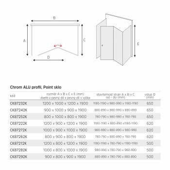 Mereo Sprchový kout, Lima, obdélník do prostoru U, zalamovací, 120x80x120 cm, chrom ALU, sklo Point