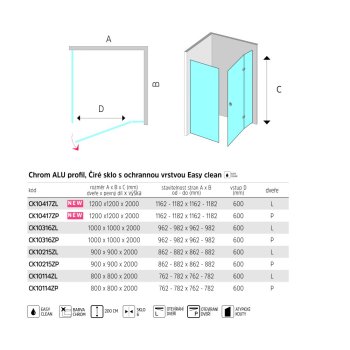 - Dlouhá životnost a snadná údržba: Bezpečnostní sklo o tloušťce 6 mm je opatřeno povrchovou úpravou Easy Clean, která využívá nanotechnologii. Tato vodoodpudivá vrstva zabraňuje usazování nečistot a vodního kamene, takže sklo zůstává déle čisté a snadno se udržuje. Úprava je zároveň odolná vůči běžným čistícím prostředkům používaným na okna a skleněné plochy – více sprchování, méně drhnutí.