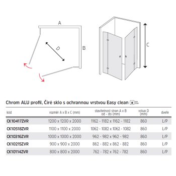 Univerzální volba pro klasické i moderní koupelny. Otočné dveře (levé nebo pravé otevírání) poskytují stabilitu i jednoduché ovládání.