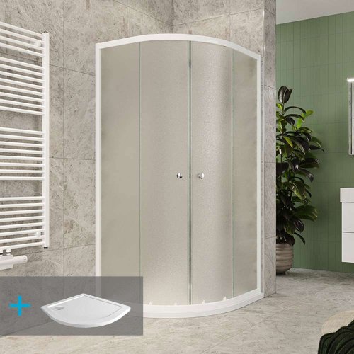Mereo Sprchový set z Kory Lite, čtvrtkruh, 90 cm, bílý ALU, Grape a nízké SMC vaničky