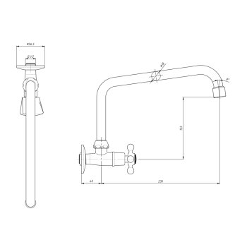 Mereo Umyvadlový kohoutek nástěnný, Retro Viktorie, s ramínkem otočným ø 18 mm - 230 mm, chrom