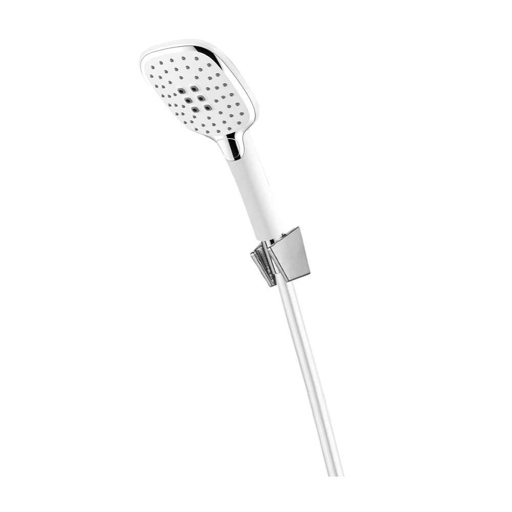 Vanový set se vyznačuje moderním designem, vysokou variabilitou a především umožňuje téměř libovolnou kombinaci s příslušenstvím sprchového programu. Součástí vanového setu je jednopolohová ruční sprcha, držák a bílá lesklá sprchová hadice s platovým potahem o délce 150 cm se systémem zabraňujícím překroucení.- fast clean: systém snadného očištění od usazenin vodního kamene