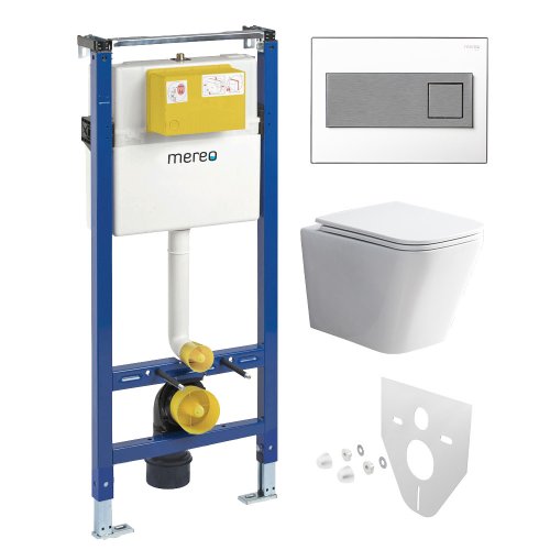 Mereo WC set - Rimless WC hranaté, modul pro sádrokarton, hranaté tlačítko bílá/chrom