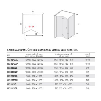 - varianta dveře/dveře umožňuje úplné otevření sprchovací části