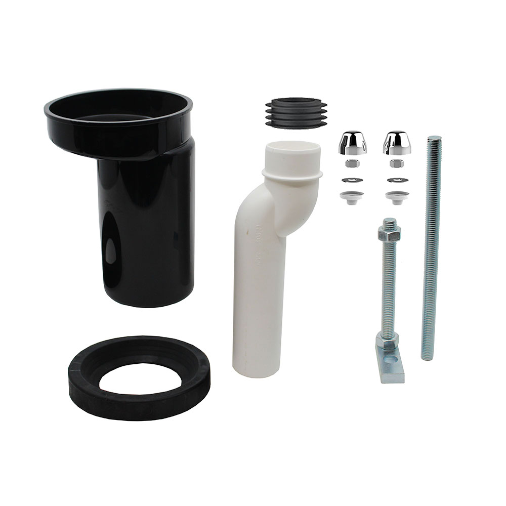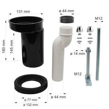 Excentrická připojovací souprava pro závěsné klozety s možností excentrického napojení o ø 25 mm. Odtoková trubka DN D80/D90, délka 180 mm. Přívodní trubka ø 45 mm s pryžovou manžetou.